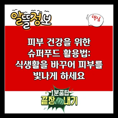 피부 건강을 지키는 최적의 방법은 바로 슈퍼푸드를 활용한 식생활의 변화에요. 각종 영양소가 가득한 슈퍼푸드를 통해 자신의 식단을 풍부하게 구성하면서 피부에 좋은 결과를 만들어낼 수 있는 방법은 다양해요. 피부를 빛나게 하는 슈퍼푸드를 오늘부터 실천해 보세요!